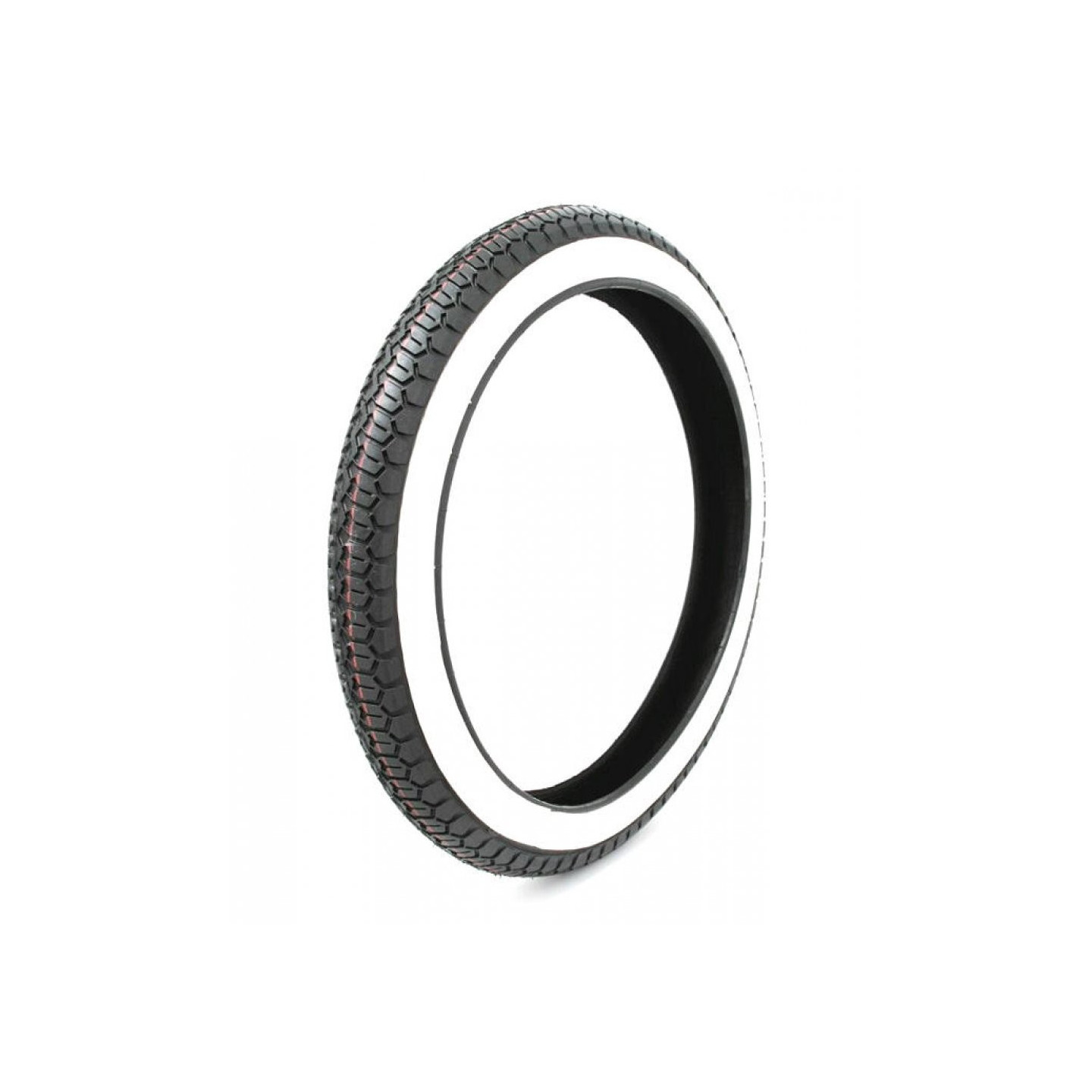 Klasická, multifunkční mopedová pneumatika. Tato verze je s bílou bočnicí.